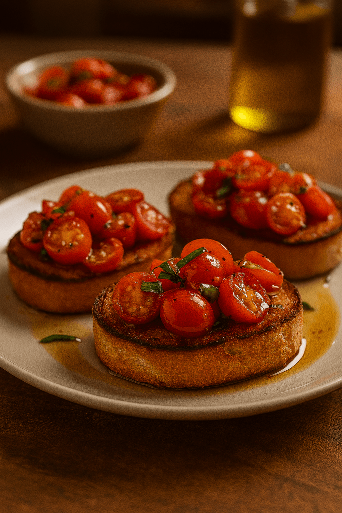 Sweet cherry tomatoes, hand-picked at peak ripeness, are chopped and mingled with fresh basil, cracked pepper, and a splash of Alabama sunshine—cold-pressed olive oil kissed with a hint of garlic. Spoon it over toasted cornbread rounds or warm biscuits for a Southern spin on the Italian classic. It’s bright, juicy, and just a little sassy—like summer in a jar.